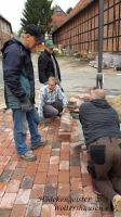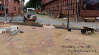 Gerade zur Stunde werden im Mitteldorf die Wesersandsteine gesetzt. Dabei muss das Eckige in das Runde...!